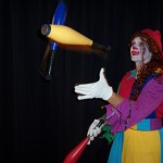 - Juggling: One, two, and three ball routines are done with a comical twist. Children and adults are also encouraged to give it a try. “Corky and Bubbles” can also do passing routines together.